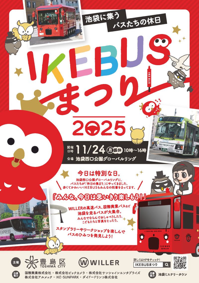 池袋西口公園グローバルリングで11月24日に開催された”IKEBUSまつり2025″にチラシ製作とミニアトラクション企画で協力しました。