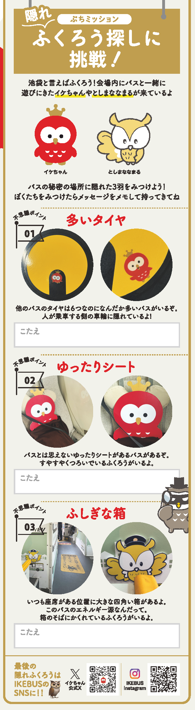 チラシにはミニアトラクションのフクロウ探しも。会場内にいるフクロウのイケちゃん達を探すといったアトラクションでした。